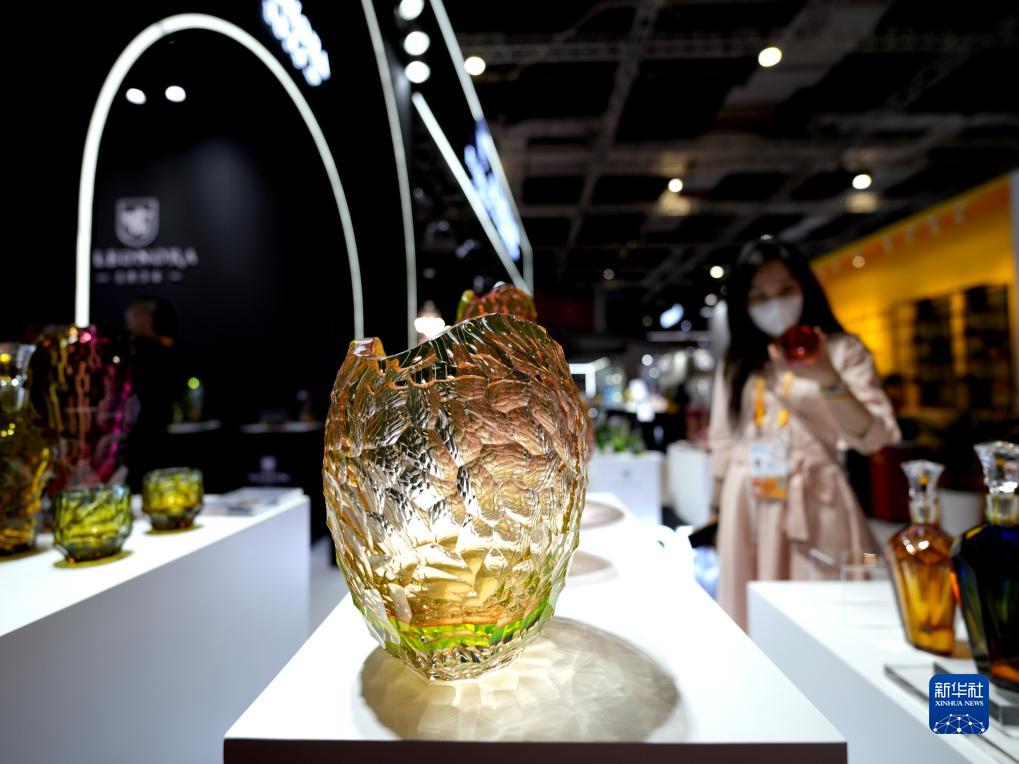 11月5日,觀眾在第六屆進博會消費品展區捷克歐若拉水晶展&參觀首次展出的水晶新品。