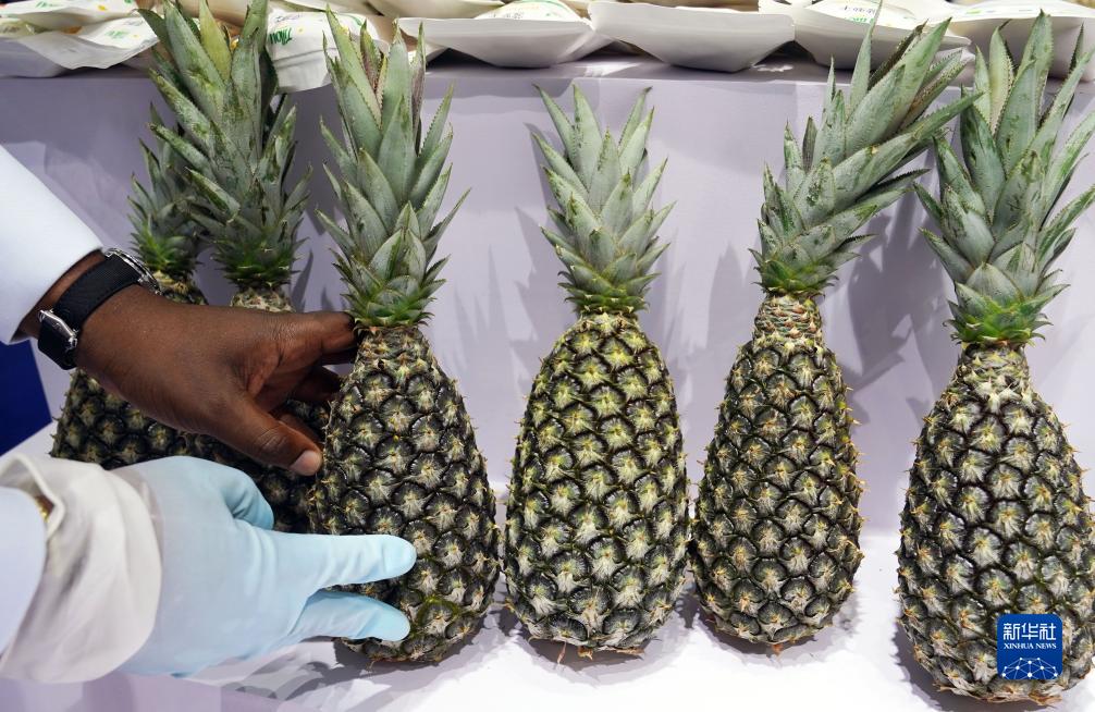 11月5日在第六屆進博會食品及農産品展區拍攝的首次亮相中國的貝寧菠蘿。