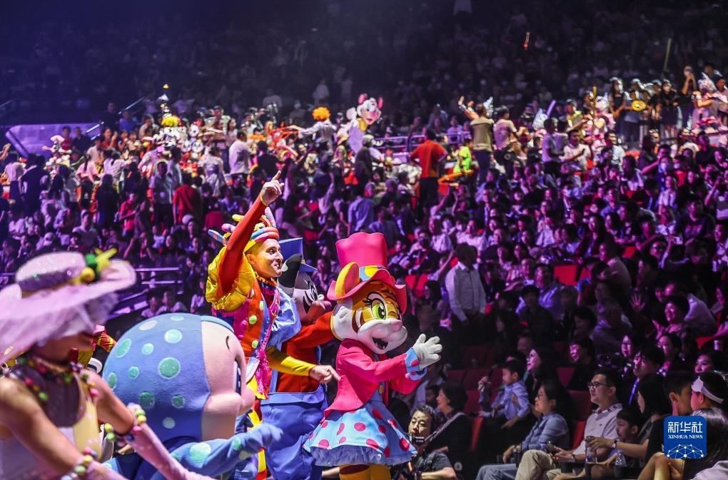第七屆中國國際馬戲節在珠海開幕,開幕式上演員與觀眾互動游戲(11月4日攝)。