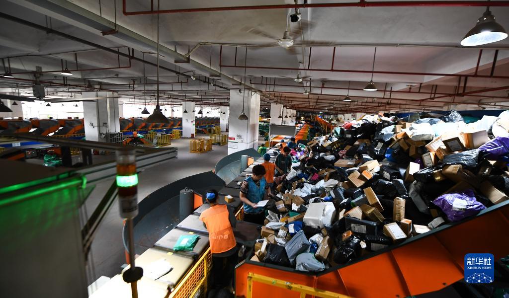 11月6日,工作人員在中國郵政集團有限公司海口郵區中心忙碌。