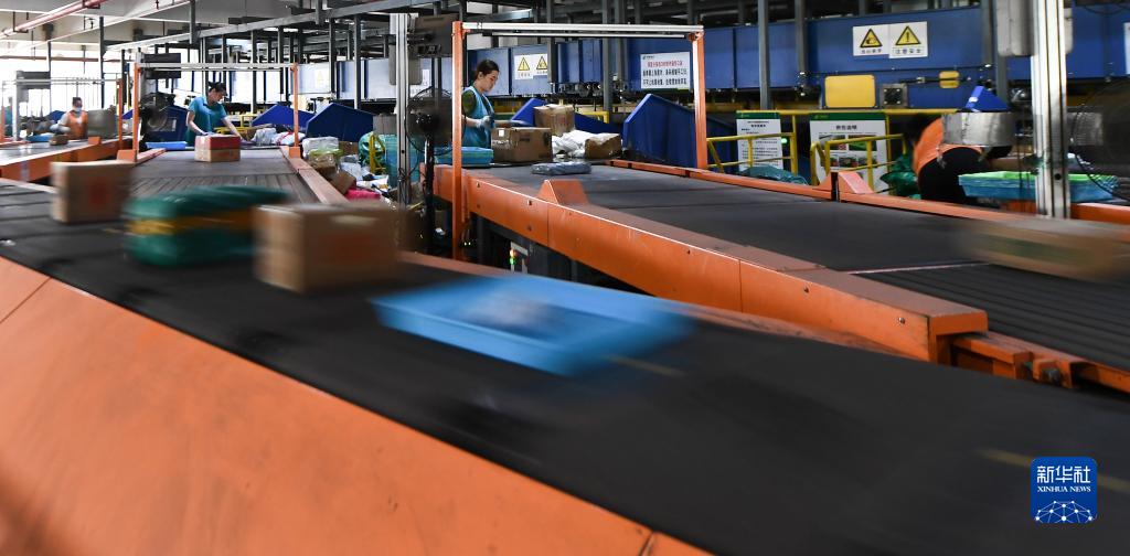 11月6日,在中國郵政集團有限公司海口郵區中心,工作人員在分揀包裹。
