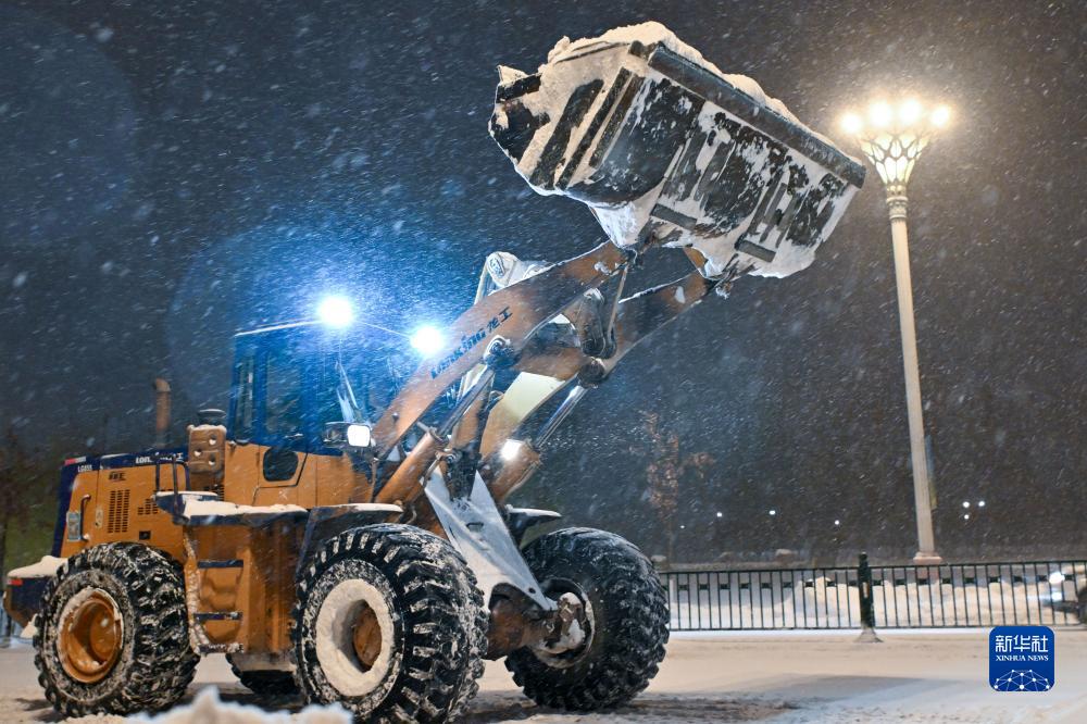 11月6日,一輛鏟車在哈爾濱友誼西路上剷除積雪。