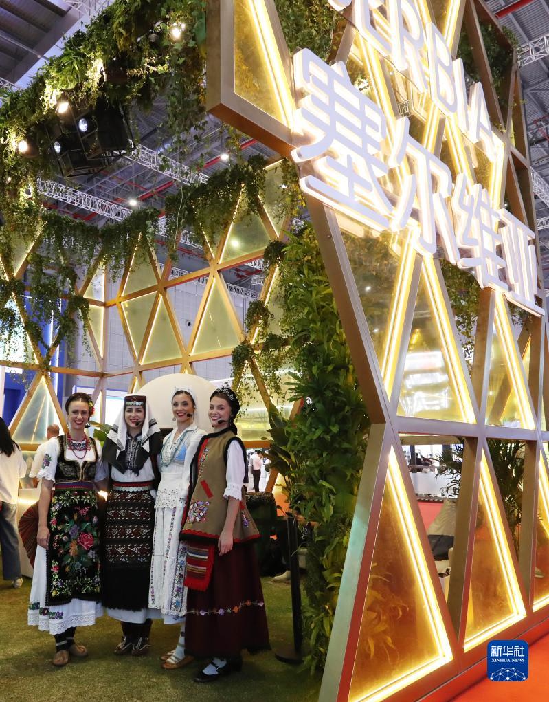 11月6日,身着傳統服飾的演職人員在第六屆進博會國家展塞爾維亞展&迎接參觀者。