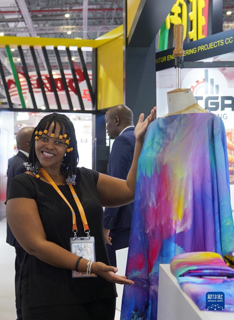11月5日,在第六屆進博會國家展南非展&,南非參展商推介服裝。