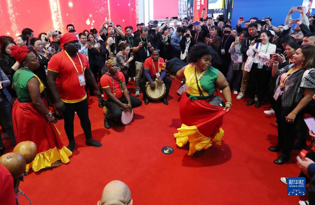 11月6日,來自第六屆進博會國家展洪都拉斯展&的演職人員在現場進行文藝表演。
