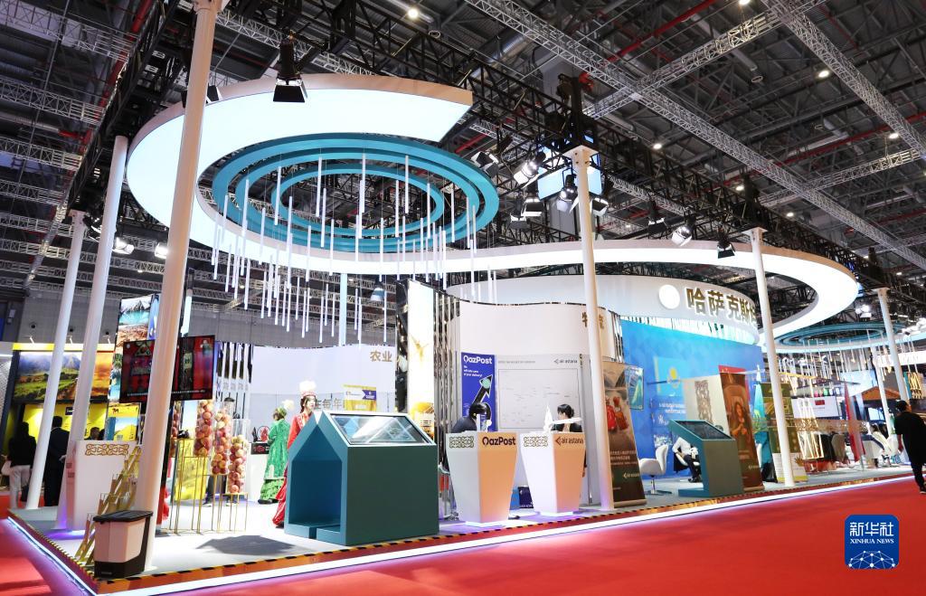 這是11月6日拍攝的第六屆進博會國家展哈薩克斯坦展&。