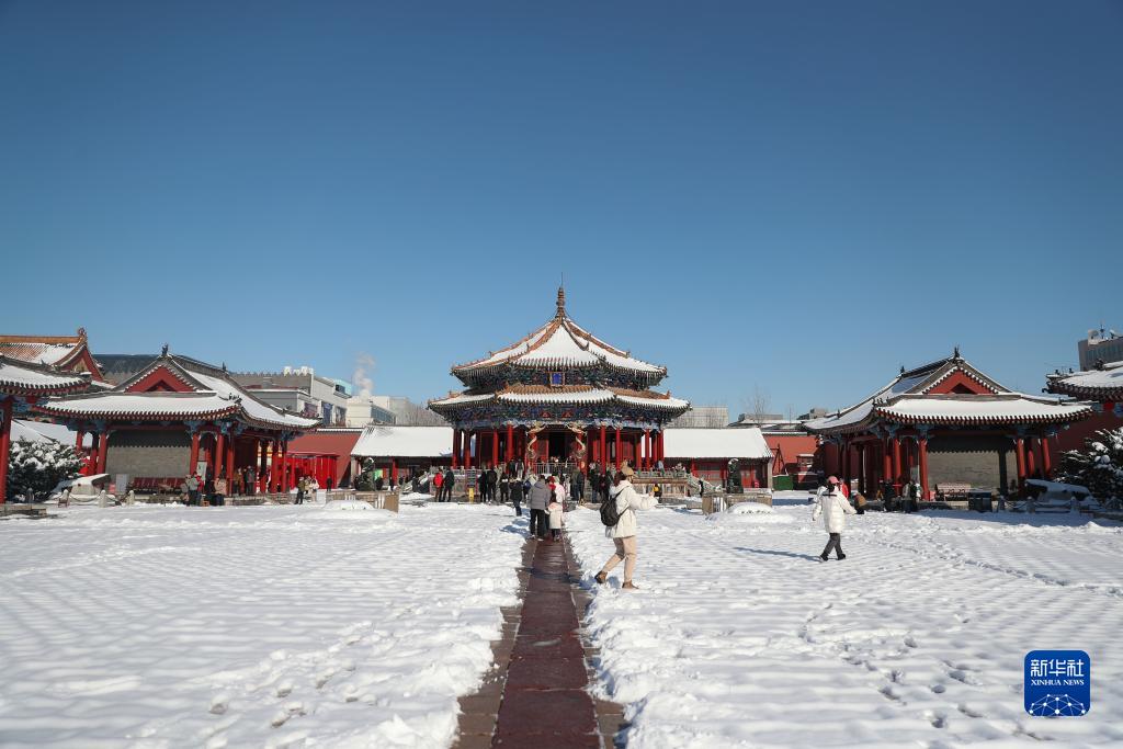 11月7日,游客在雪後的瀋陽故宮游覽參觀。