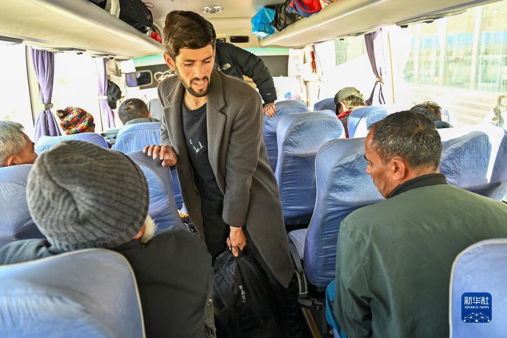 在新疆紅其拉甫口岸,出境旅客登上國際道路旅客班車(11月6日攝)。