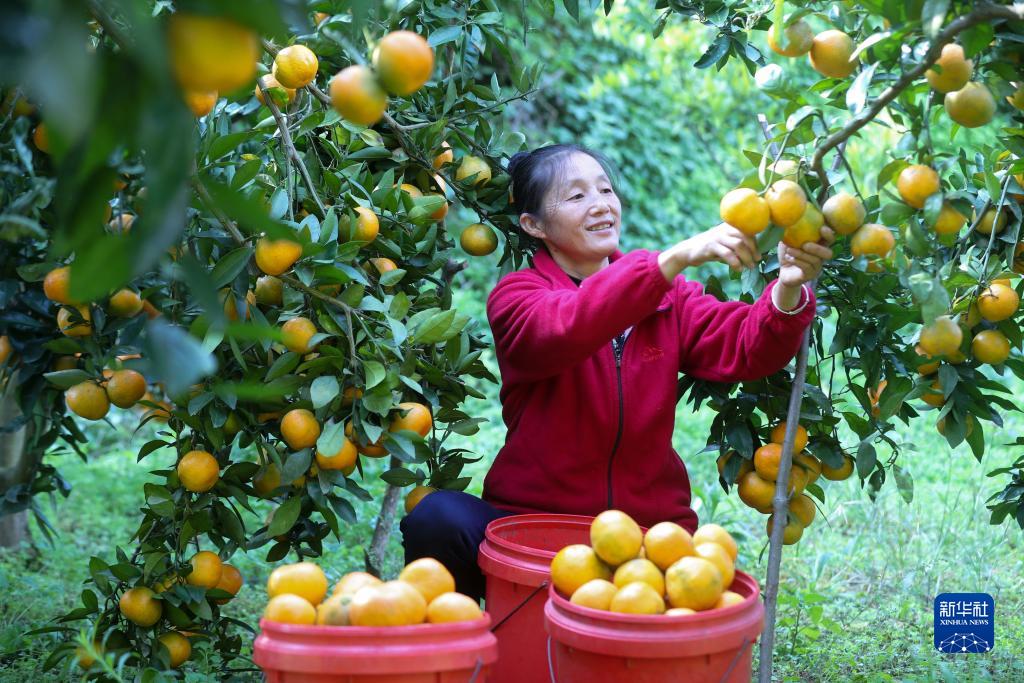 11月7日,在貴州省開陽縣南龍鄉土香村,果農在採摘蜜橘。