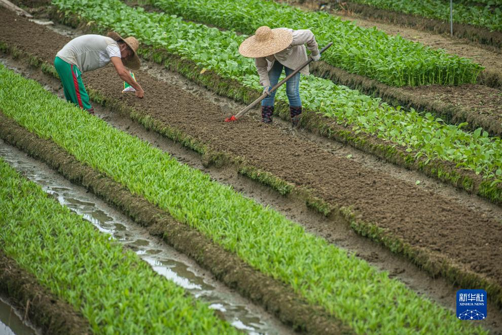 11月7日,在海南省琼海市嘉積鎮大坡村,農民在種植葉菜。