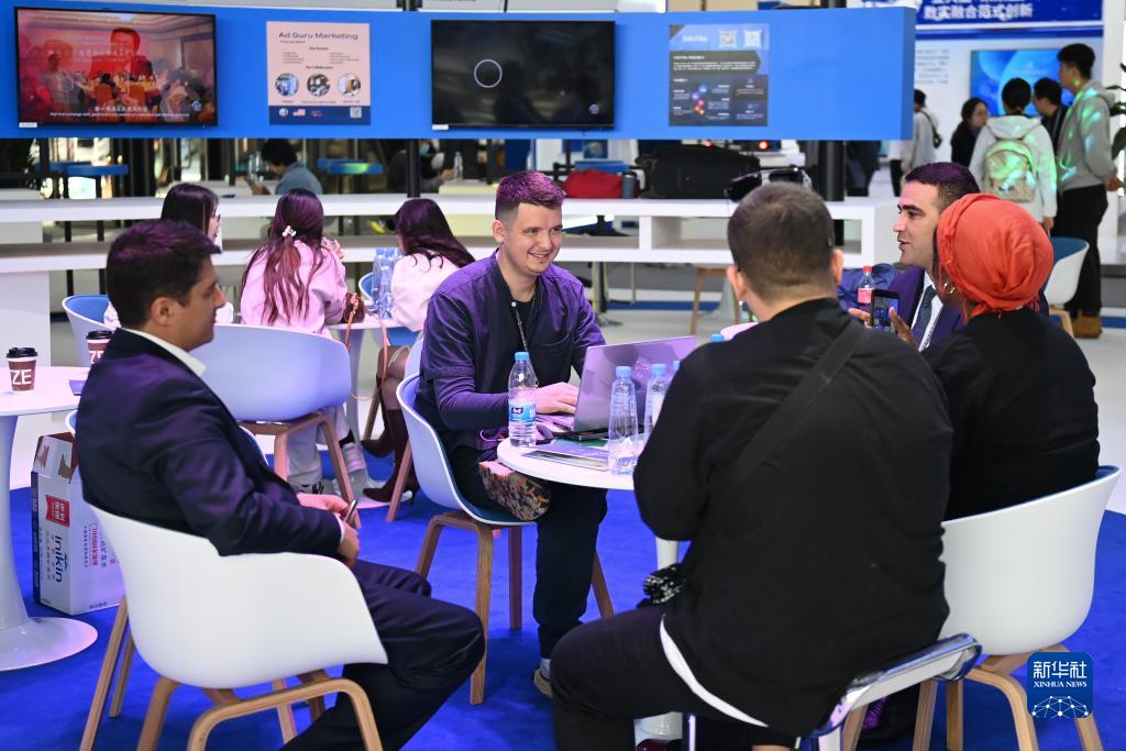 11月7日,“互聯網之光”博覽會境外展區的參展商代表在洽談區交流。