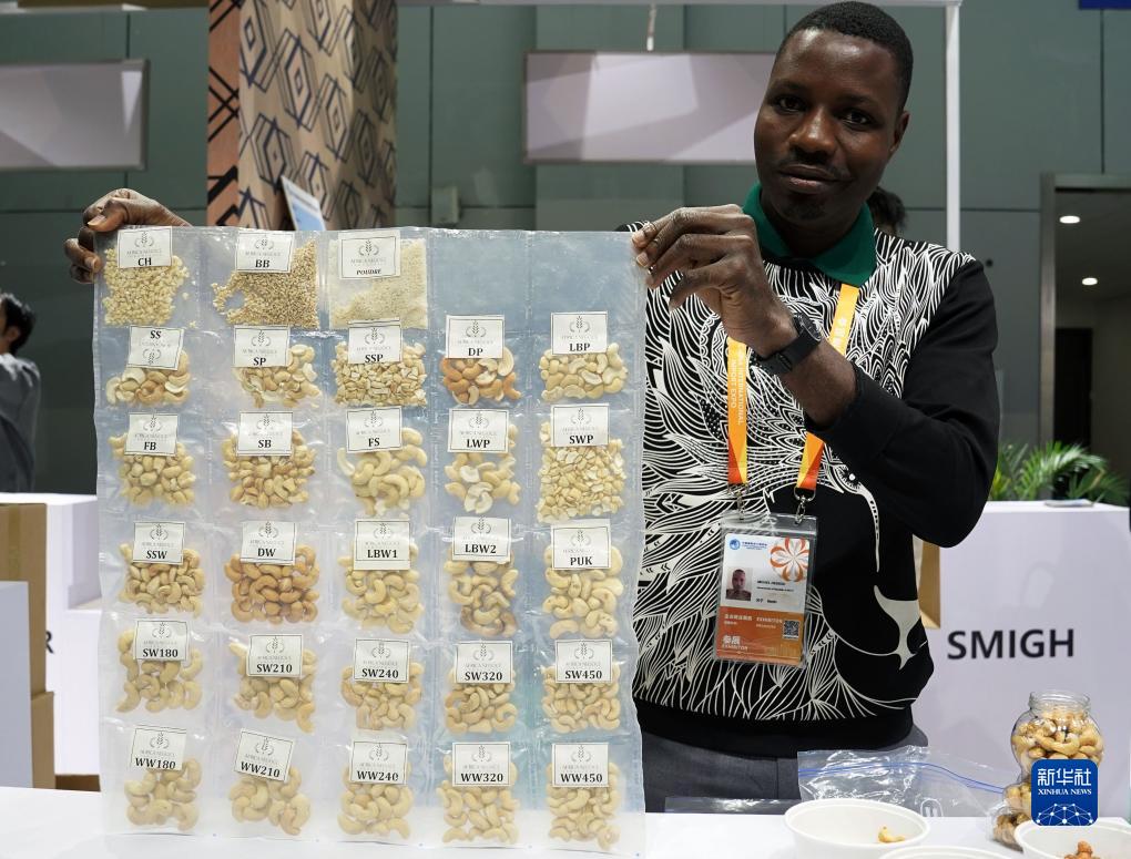 11月7日,在第六屆進博會食品及農産品展區展示的來自貝寧的堅果。