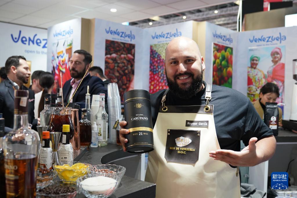 11月7日,展商在第六屆進博會國家展委內瑞拉展&展示朗姆酒。