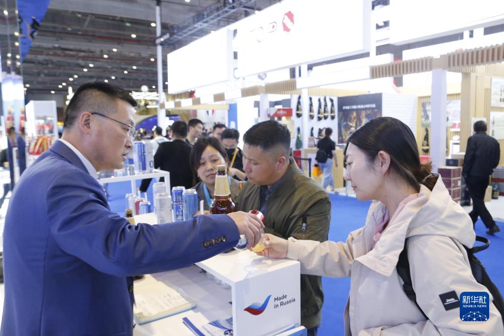 11月7日,在第六屆進博會食品及農産品展區俄羅斯出口中心展&,參觀者品嘗來自俄羅斯的波羅的海啤酒。
