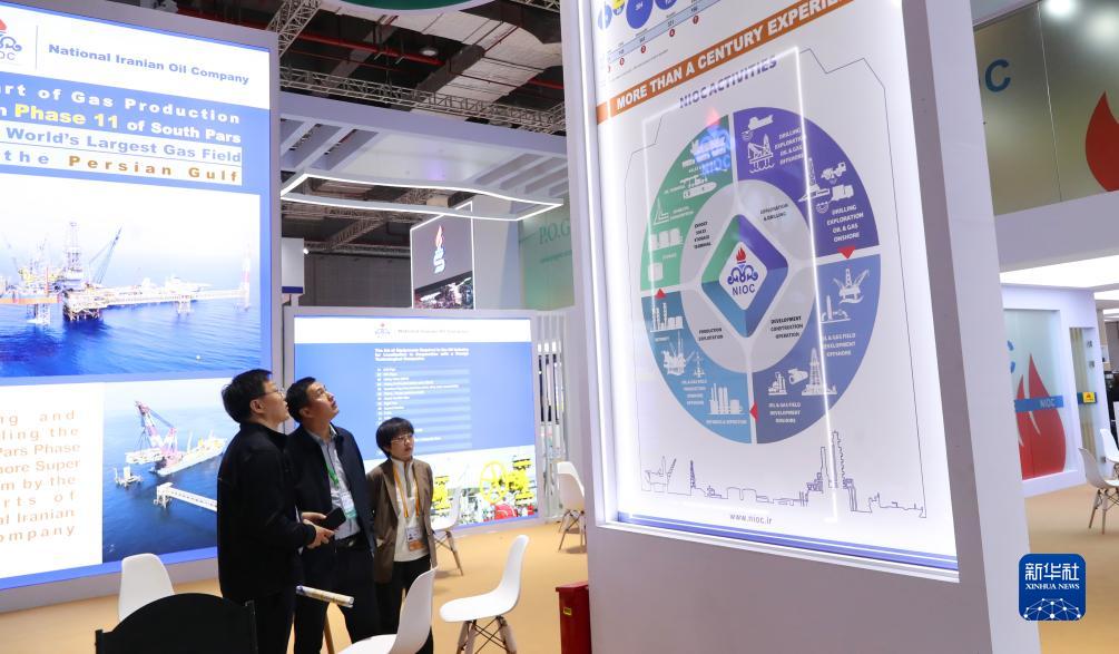 11月7日,參觀者在第六屆進博會技術裝備展區的伊朗石油化學和工業公司展&邊駐足觀看。