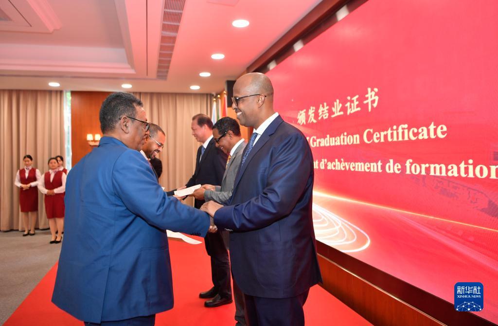 當日,首屆亞吉鐵路高層管理人員培訓在天津鐵道職業技術學院舉行結業儀式。本屆培訓共有來自埃塞俄比亞、吉布提的35名技術、人事等高管參加,相繼完成了為期兩個月鐵路運營方面的知識培訓,未來將致力於亞吉鐵路運營服務,助力當地經濟社會發展。