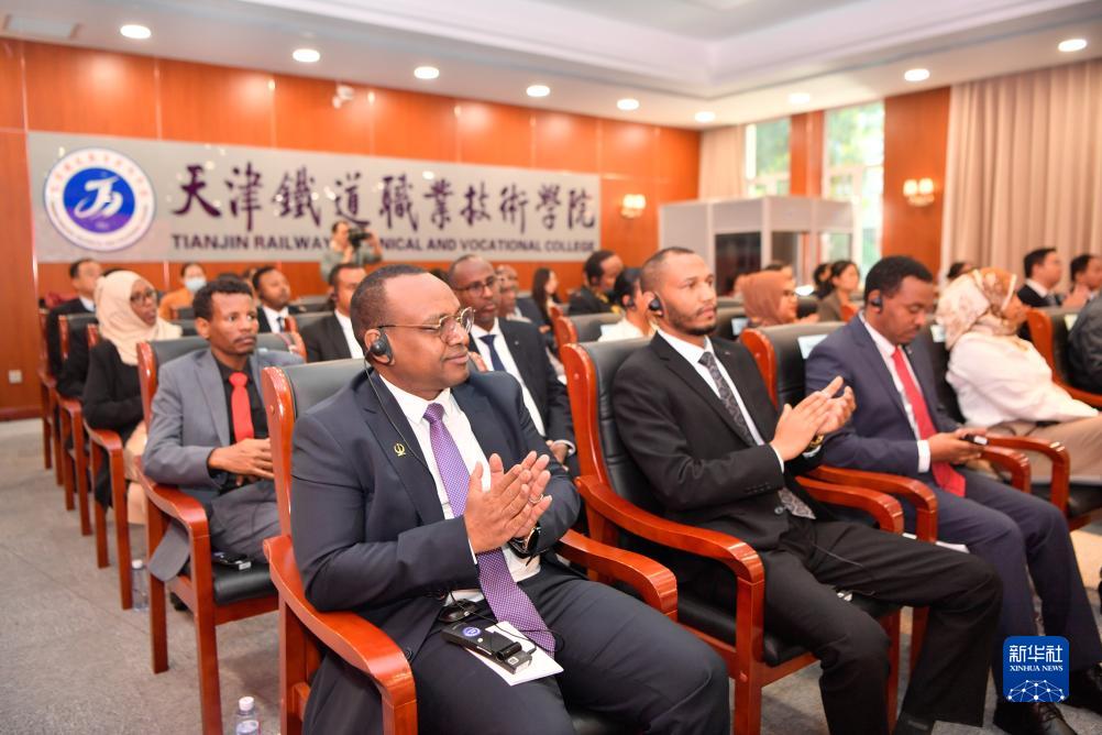 當日,首屆亞吉鐵路高層管理人員培訓在天津鐵道職業技術學院舉行結業儀式。本屆培訓共有來自埃塞俄比亞、吉布提的35名技術、人事等高管參加,相繼完成了為期兩個月鐵路運營方面的知識培訓,未來將致力於亞吉鐵路運營服務,助力當地經濟社會發展。