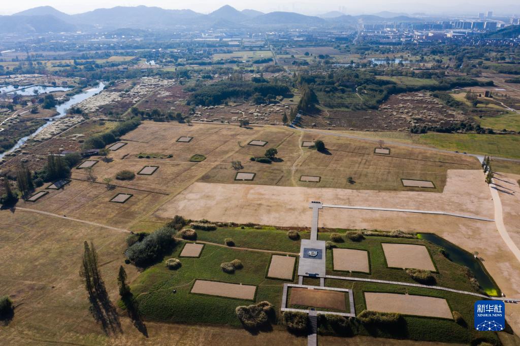 11月7日拍攝的良渚古城遺址公園內的莫角山遺址(無人機照片)。