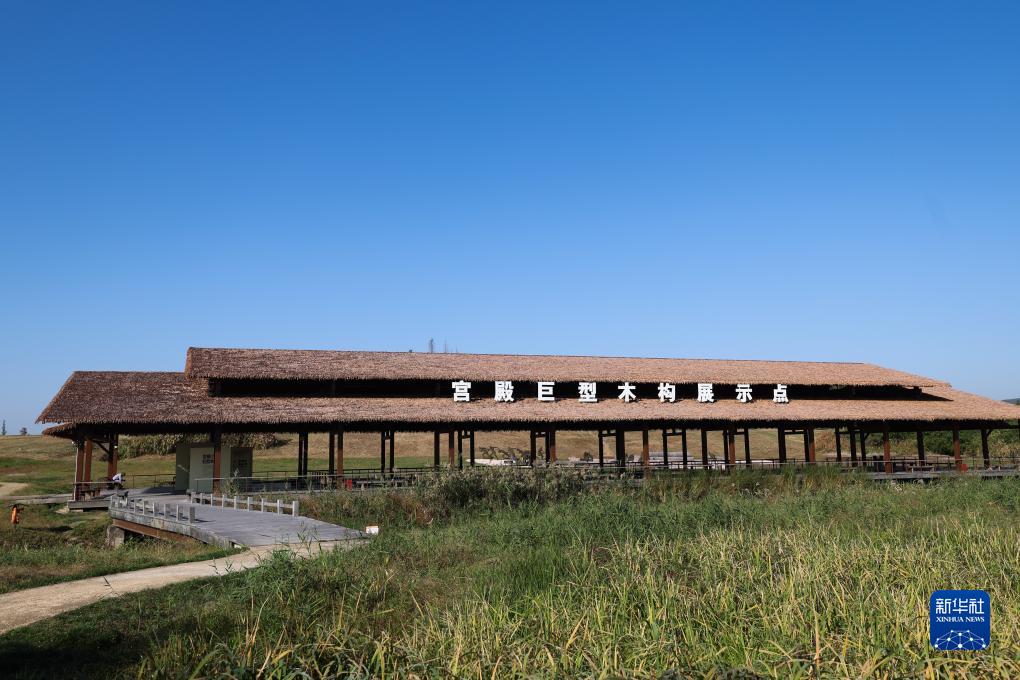 11月7日拍攝的良渚古城遺址公園內的宮殿巨型木構展示點。
