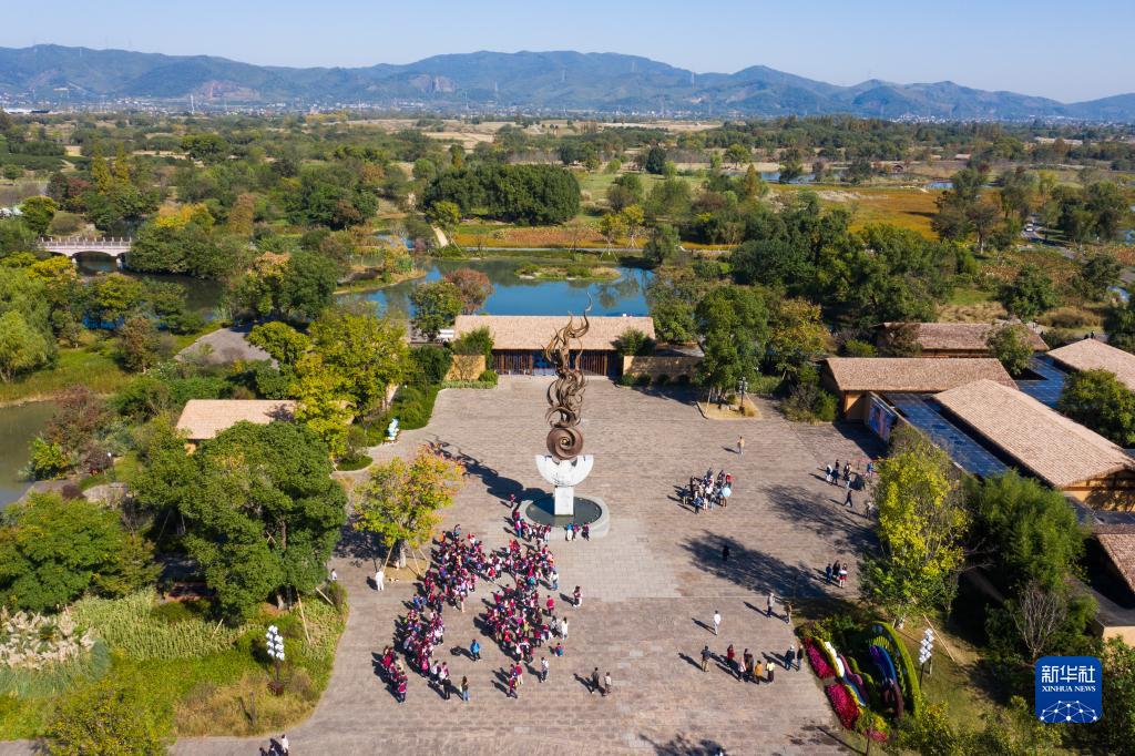 11月7日拍攝的良渚古城遺址公園入口(無人機照片)。