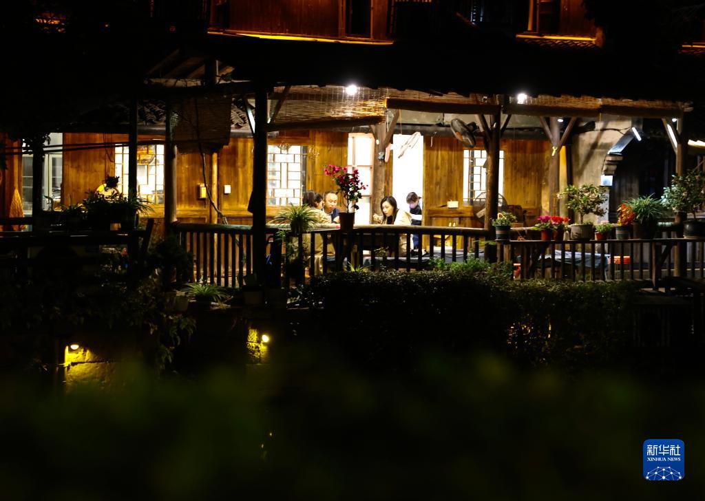 11月7日晚,人們在烏鎮喝茶休閒。