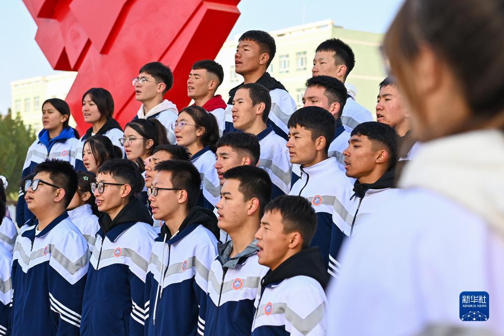 在新疆阿克陶縣雪松中學,“紅杜鵑”合唱社團的學生在演唱紅色歌曲(11月7日攝)。