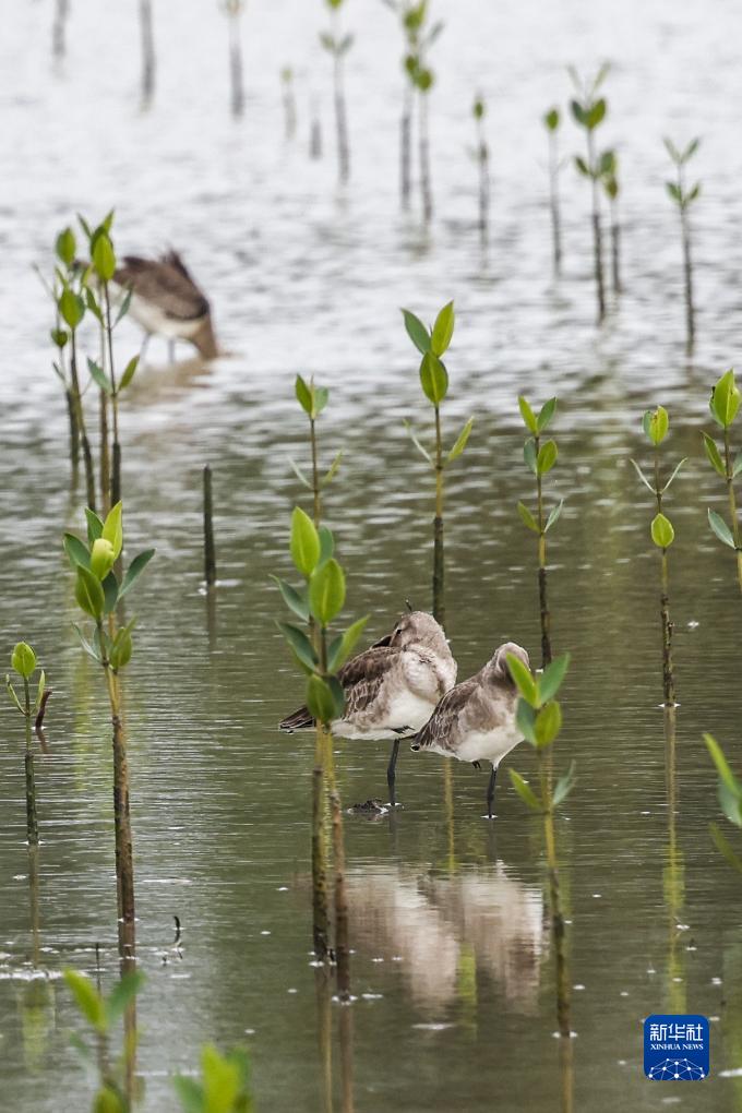 近期,海南東寨港(三江灣)生態修復項目迎來冬候鳥。海南東寨港(三江灣)生態修復項目建設內容包括種植紅樹林1600畝,紅樹林(幼年林)撫育2815畝,鳥類、水生動物、椰林生境改善以及基礎設施建設等,於2023年2月開工,計劃工期兩年。目前紅樹林(幼年林)恢復工作和椰林生境改善已全部完成,進入常態化管理階段。