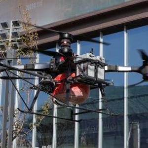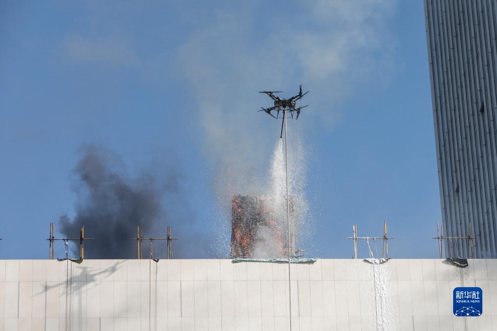 11月8日,高噴滅火無人機進行高層建築滅火救援實戰演練。