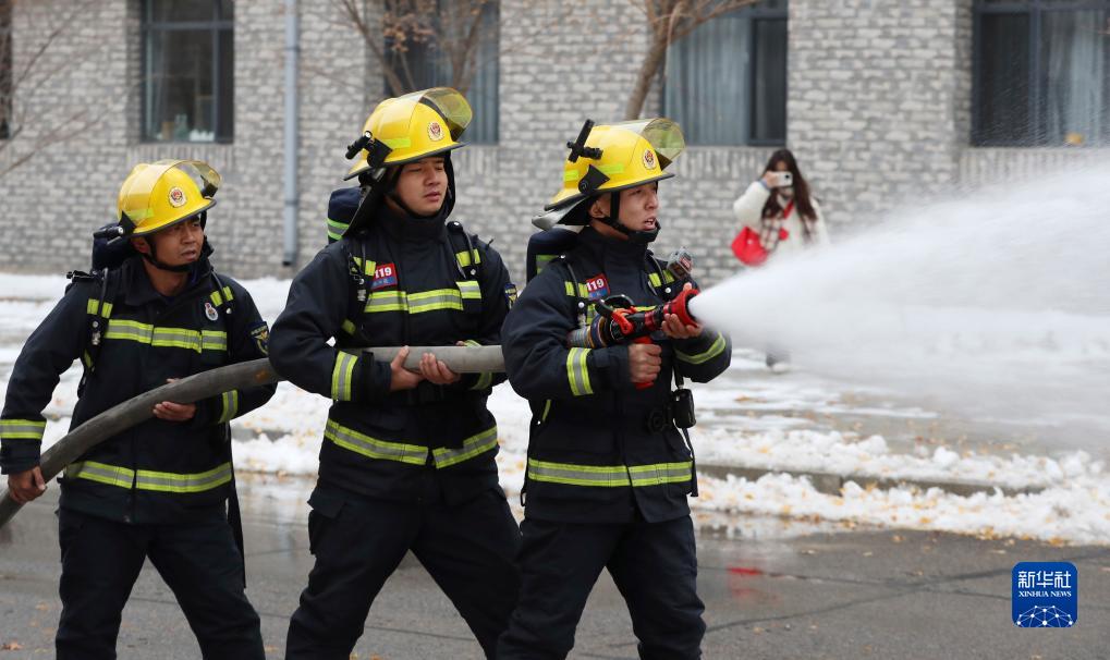 11月8日,在瀋陽工學院,消防救援隊員進行演練。
