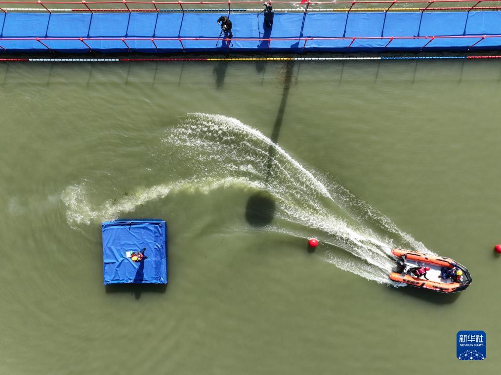 11月8日,消防員在南京玄武湖參加水域救援比賽(無人機照片)。