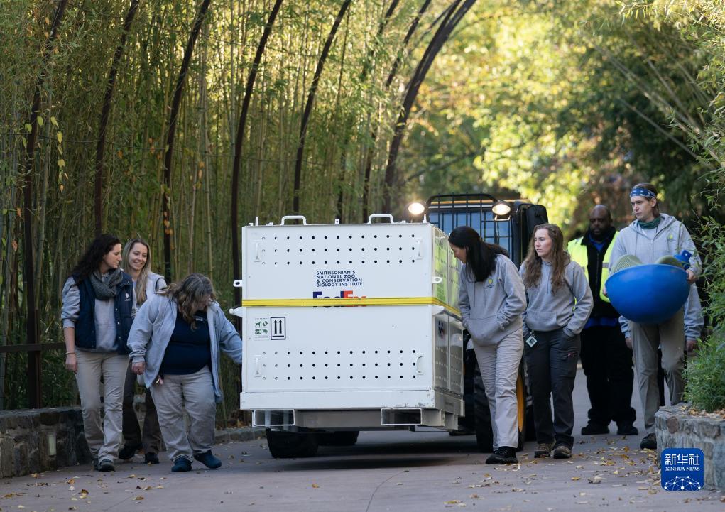 11月8日,在美國華盛頓史密森學會國家動物園,裝有大熊貓的箱子準備被運往機場。