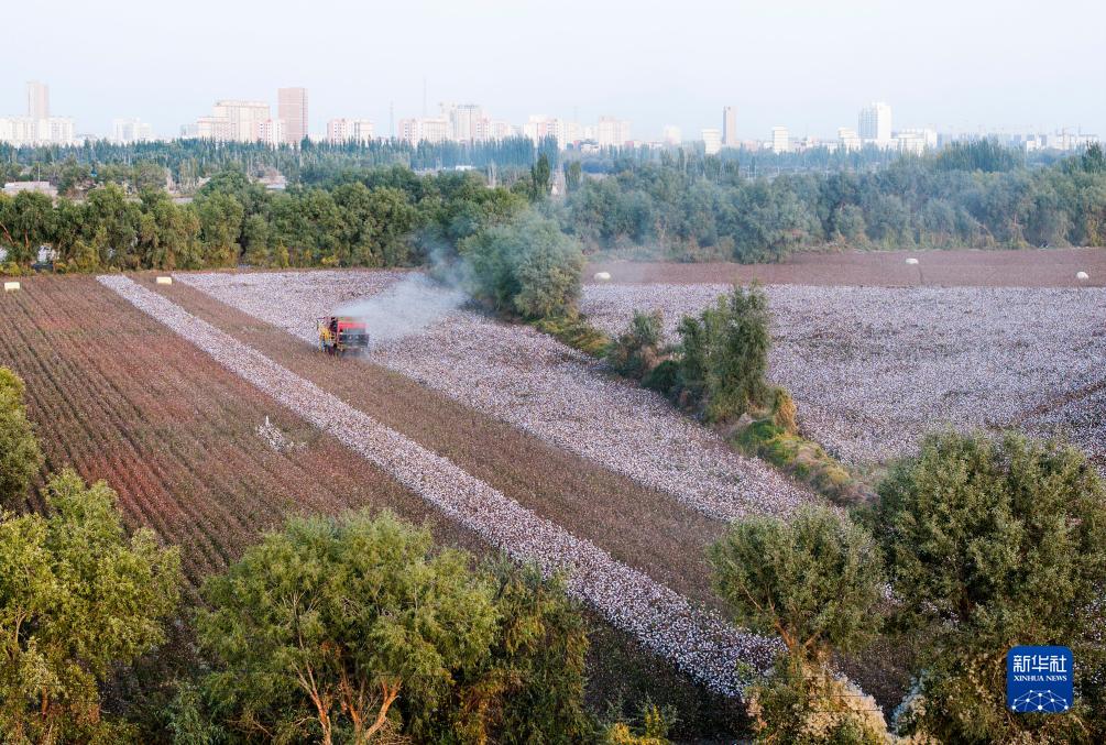 收穫時節,在新技術和大型機械加持下,一輛輛採棉機穿梭在尉犁縣105萬畝棉田上,棉農們正緊張有序地開展秋收,田間地頭一派繁忙景象。