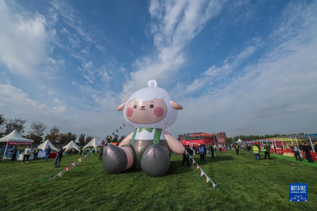 11月9日,湖羊文化節現場,游客和當地百姓在購買和品嘗包括羊肉在內的各類農特産品。