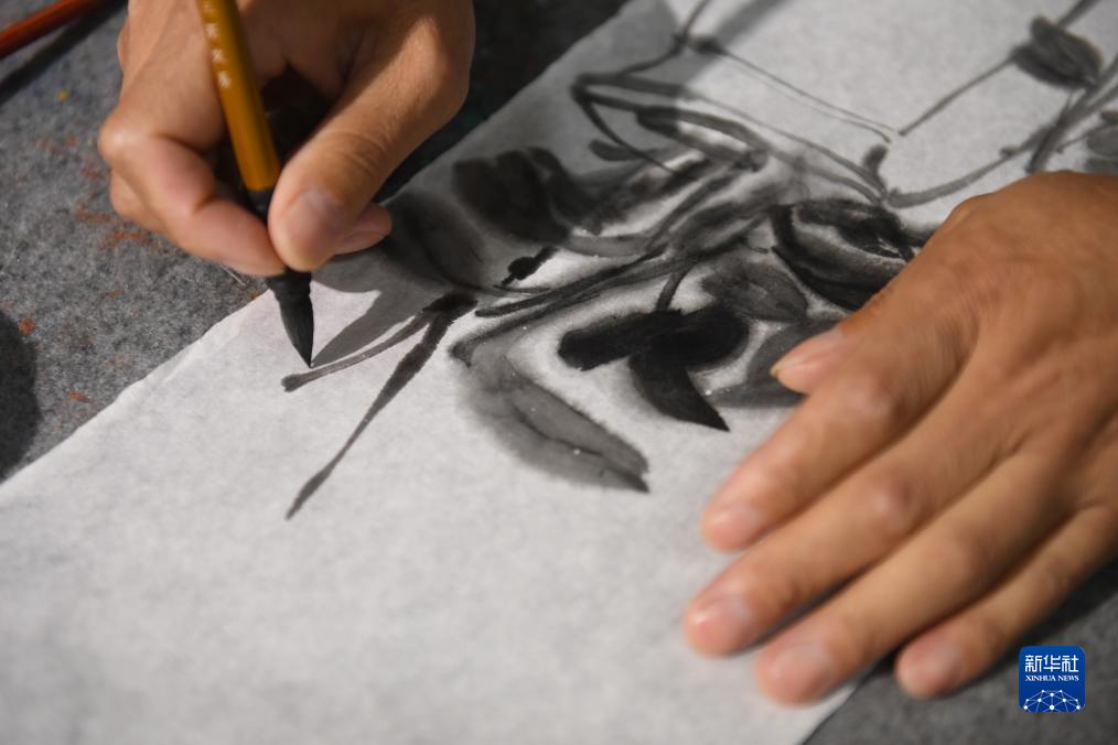 11月9日,黃宏健在開化紙傳統技藝工坊試紙。