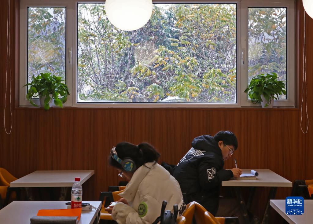 11月9日,學生在瀋陽農業大學三食堂學習、休憩。