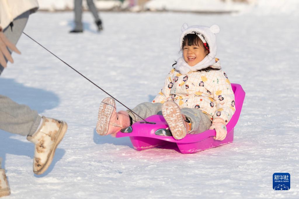 11月9日,小朋友在哈爾濱建築藝術廣場上游玩。