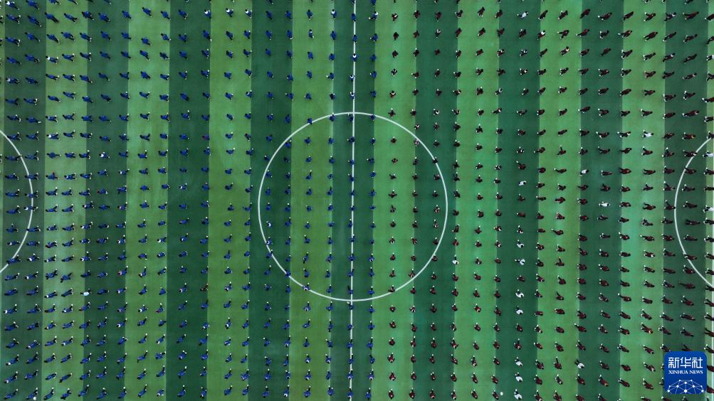 11月9日,黃平民族中學的學生在大課間做活動(無人機照片)。
