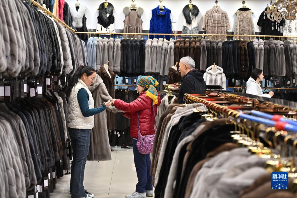 11月8日,游客在中哈霍爾果斯國際邊境合作中心中方區域選購服裝。