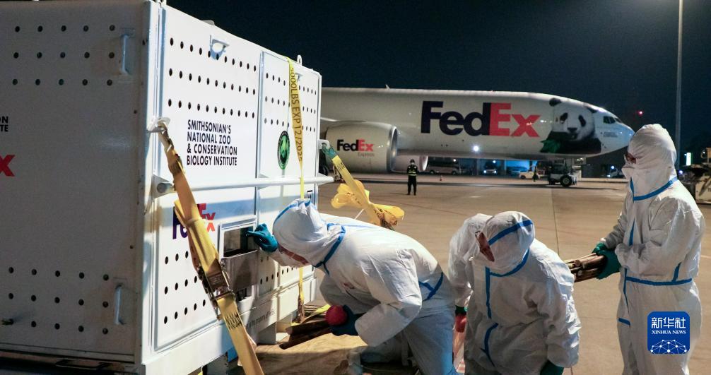 9日晚11時許,搭載旅美大熊貓“美香”“添添”“小奇蹟”的專機順利抵達成都雙流國際機場。
