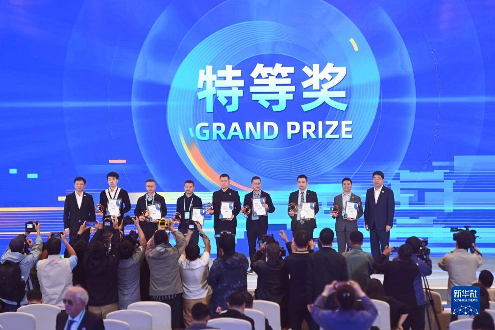11月10日,獲得2023“直通烏鎮”全球互聯網大賽特等獎的代表在頒獎典禮上。