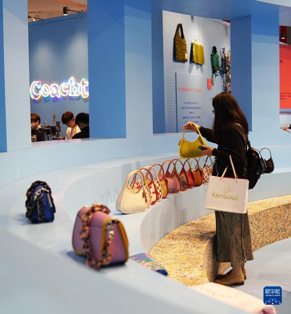 11月9日,在第六屆進博會消費品展區蔻馳展&,參觀者在挑選手提包。