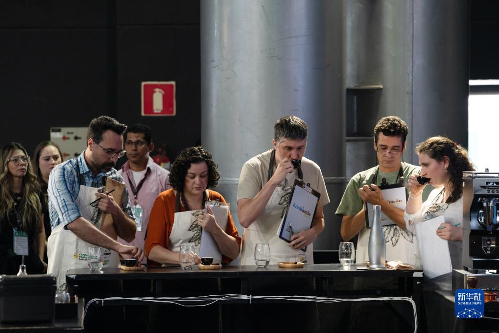 11月9日,評委在巴西貝洛奧裏藏特舉行的咖啡周上品鑒咖啡。