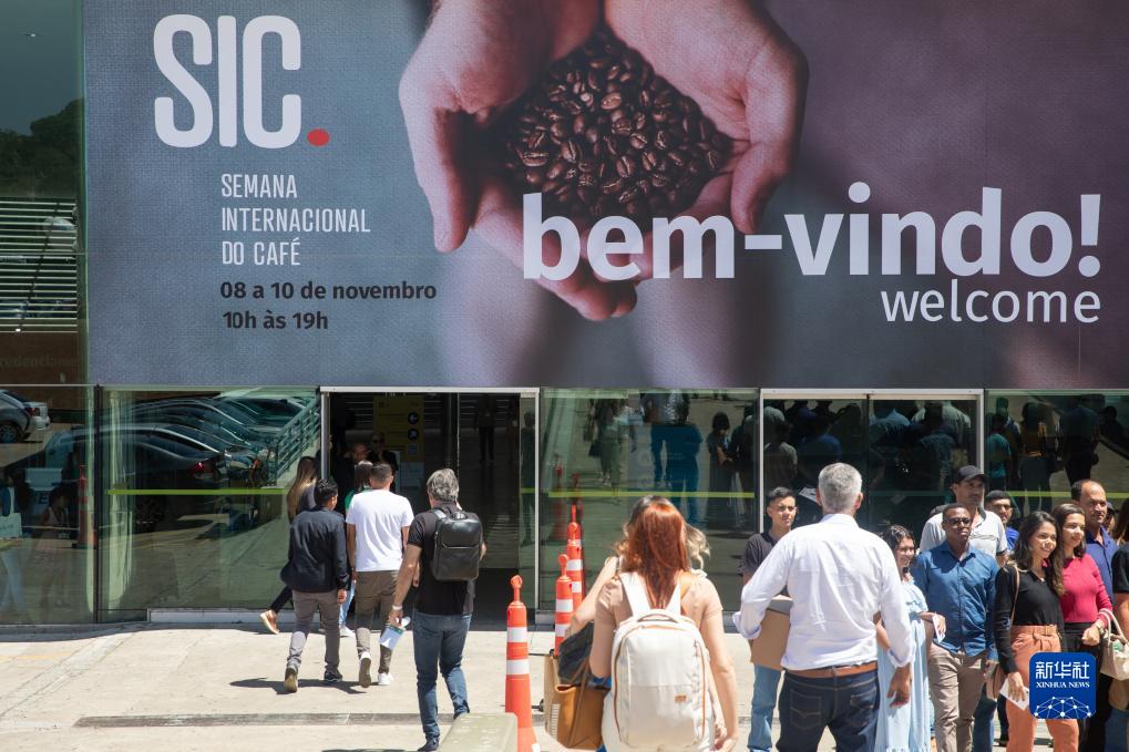 11月9日,在巴西貝洛奧裏藏特,參觀者進入咖啡周展會場館。