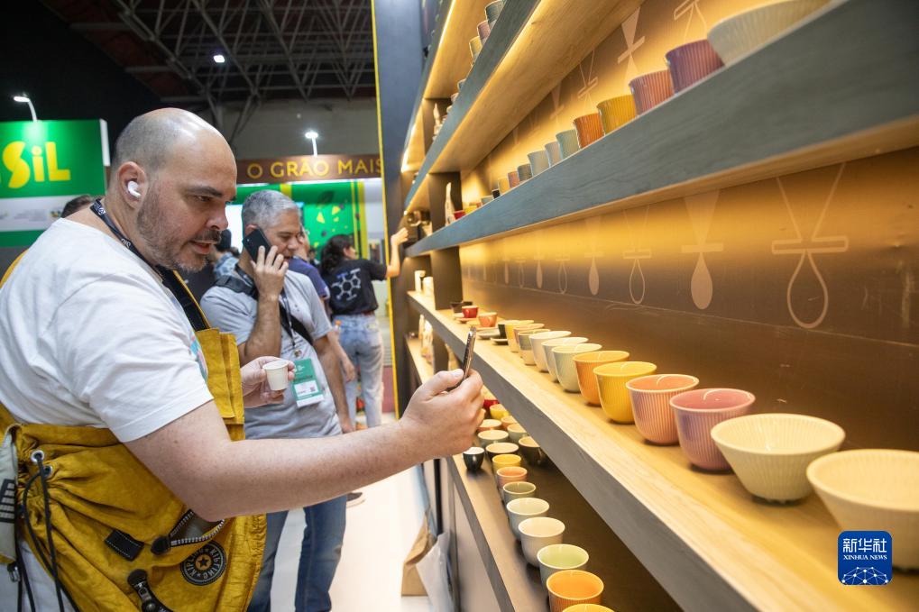 11月9日,在巴西貝洛奧裏藏特的咖啡周上,參觀者拍攝咖啡杯。
