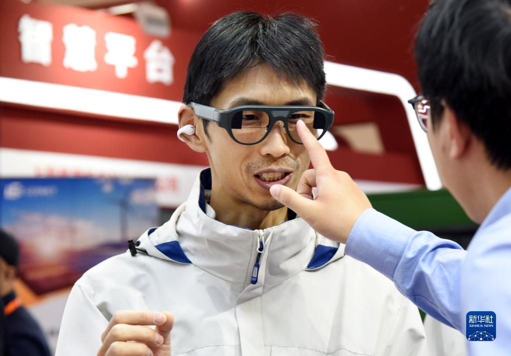 11月10日,參會者體驗國産“同聲字幕眼鏡”。