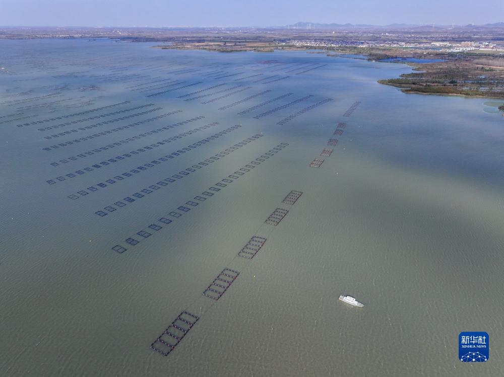 這是11月10日拍攝的連雲港石梁河水庫標準化網箱養殖設施(無人機照片)。