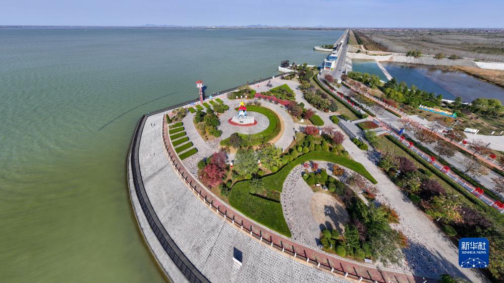 這是11月10日拍攝的連雲港石梁河水庫沿線生態風景(無人機照片)。