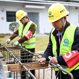 當日,中鐵建工集團南京大尺寸硅外延材料産業化項目現場舉行華夫板安裝職業技能競賽,36名工人比拼技能,一展身手。