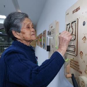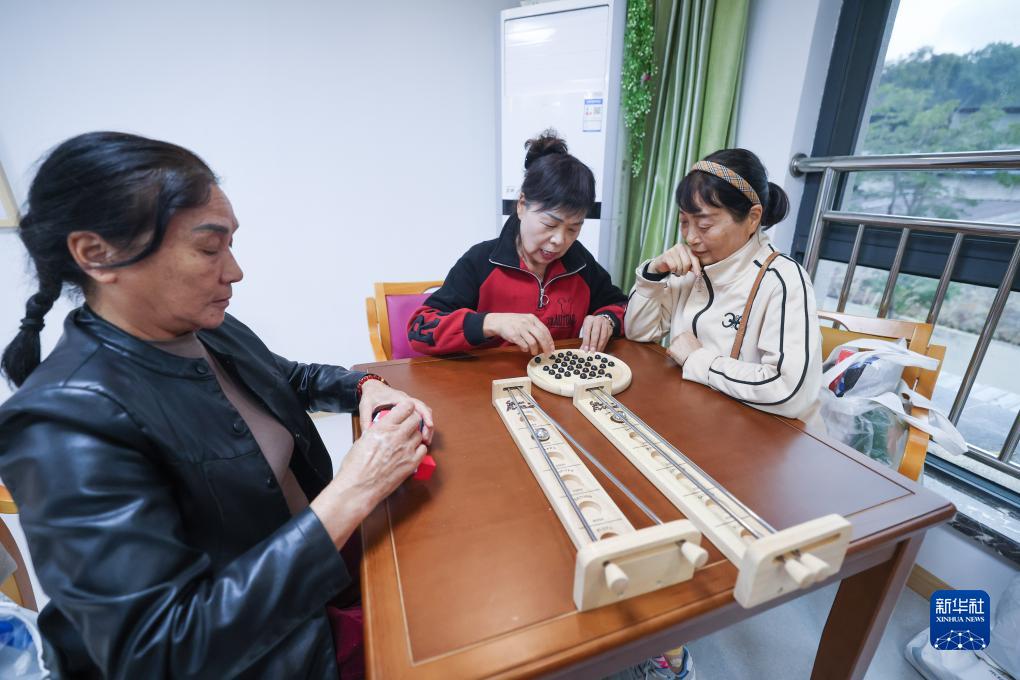 11月10日,在雲和縣百齡幫鳳凰家園長者養護中心的老年木玩活動室內,老人們在玩益智木玩。雲和縣民政部門積極在多個養老中心推進木玩活動室的建設,活動室以益智類、運動類、康復類、康養類等木制玩具為媒介,幫助老年人動手動腦,保持大腦健康活力。