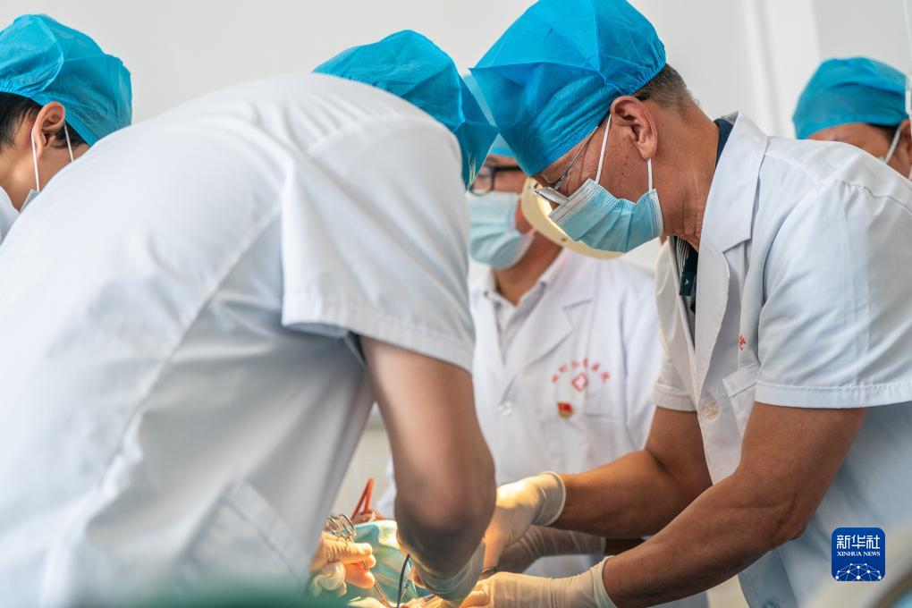 在畹町仁慈醫院,沈坤(右)和同事在給一名病人做手術(10月28日攝)。